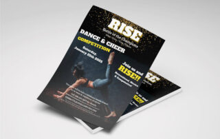 Flyer Design for 2025 Dance & Cheer Competition We designed this high-energy promotional flyer for the 2025 “RISE: Battle of the Champions” Dance & Cheer Competition. With bold typography, a dynamic athlete photo, and a black-and-gold theme, the design captures the excitement and competitive spirit of the event. Key event details are clearly highlighted, including the date, location, and how to register, while a strong call to [...]